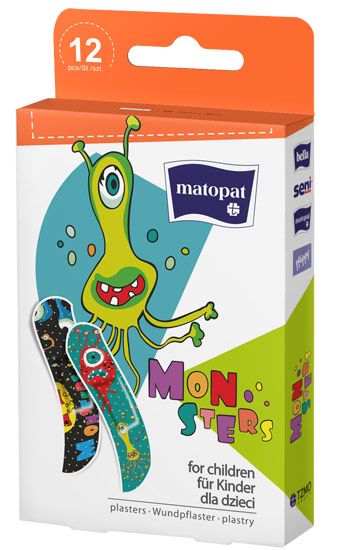 Тонкие пластыри на пленочной микроперфорированной основе с изображением веселых монстров, с центрально расположенной впитывающей подушечкой, которая впитывает раневое отделяемое. Впитывающая подушечка покрыта атравматической сеточкой, которая препятствует прилипанию волокон подушечки к ранке. Поэтому смена пластыря безболезненна и комфортна. Гипоаллергенный клей не вызывает раздражений и аллергии. Клей настолько деликатен, что пластыри легко и безболезненно отклеиваются от кожи, что имеет особенное значение во время смены пластыря у ребенка.